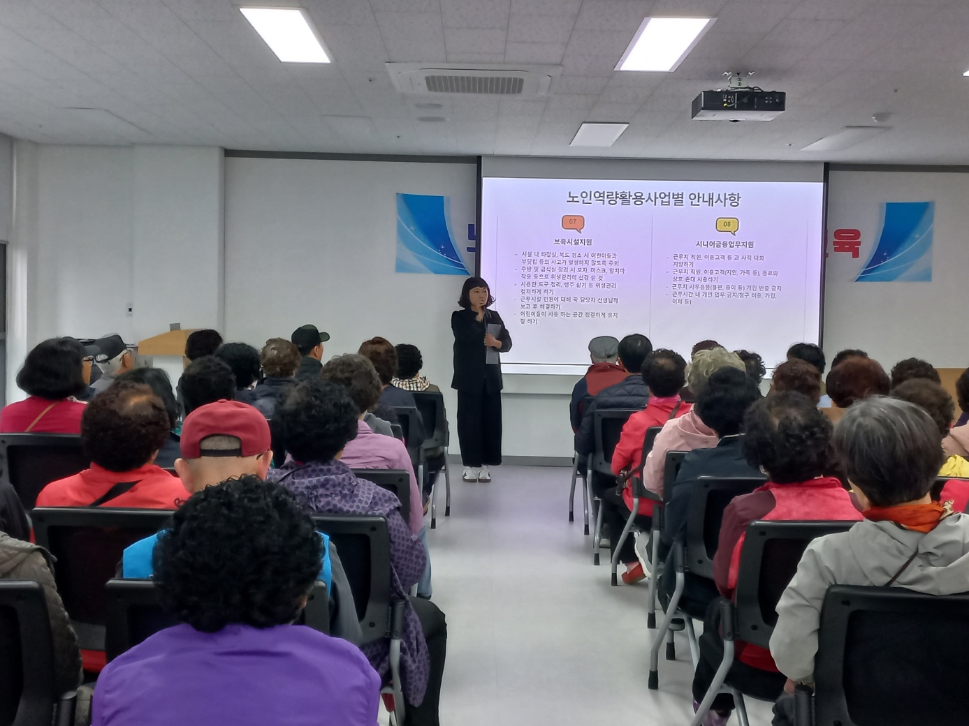 이번 직무교육은 노인일자리 및 사회활동지원사업에 대한 이해, 근무 조건, 프로그램 유형 안내와 사업 유형별 근무방법, 주의사항 등의 숙지를 통해 원활한 노인일자리 업무 수행을 목적으로 진행되었습니다.
